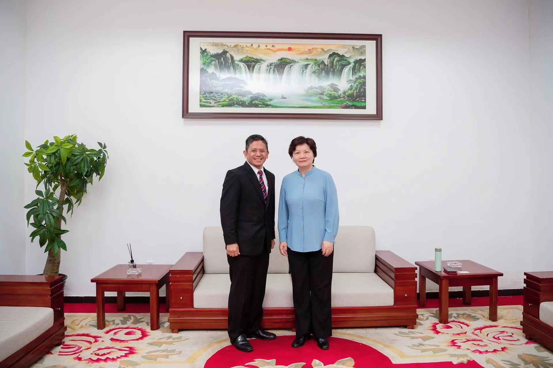 彭双阶介绍了我校办学发展情况,以及与泗水国立大学、雅加达国立大学等印尼高校的合作交流成果,希望在李健的支持与帮助下,与印尼高校和机构在师生交流、人才培养、国别与区域研究、汉语推广等方面开展更加深入密切的合作,着力培养更多高层次国际化人才。在介绍我校印尼留学生的相关情况时,彭双阶表示,印尼学生是我校国际学生的重要组成部分,为多元校园文化作出了突出贡献,欢迎更多优秀印尼学生来校学习。