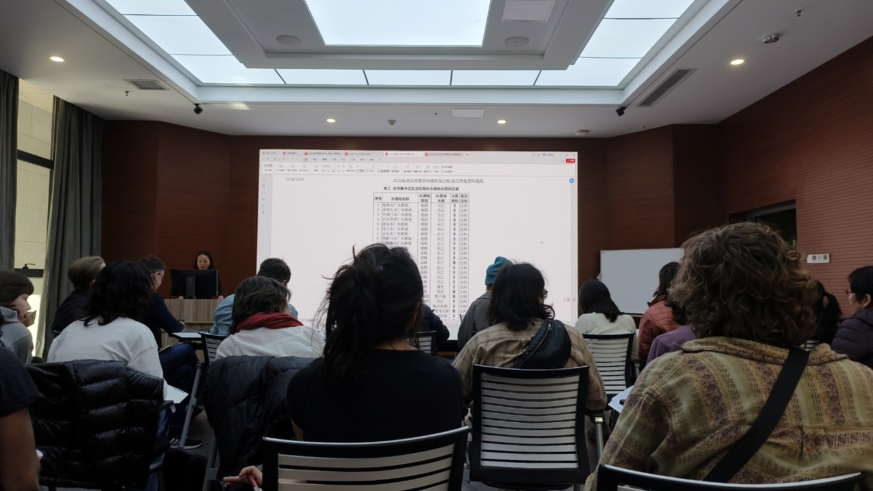 座谈会后,谢双玉教授、熊丽副教授与瓦萨学院师生代表团进行了深入的学术交流。谢双玉教授介绍了武汉市的基本情况,并梳理了武汉市从航运、工业生产等方面利用长江和汉水的历史以及近20年对滨江地区进行游憩化转型利用的情况、经验和挑战。熊丽副教授则从地理位置、洪水对城市的影响、水质的变化、水体的变化和功能、湖泊和河流的面积和污染变化、国家和政府采取的有效措施等方面介绍了武汉的水环境及其变化。