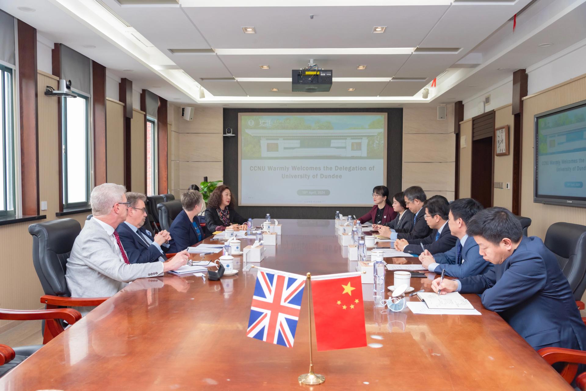 4月10日,邓迪大学校长伊恩·格里斯佩(Iain Gillespie)、科研副校长利珊·吉布森(Lisanne Gibson)、教学副校长布莱尔·格鲁布(Blair Grubb)、中国区主任裘知一行来访我校。校长彭双阶在行政楼三楼会议室会见代表团并座谈。人工智能教育学部、生命科学学院、国际合作与交流处相关负责人出席。