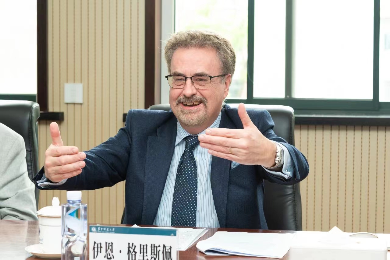 格里斯佩校长对我校的热情接待表示衷心感谢。他表示,作为我校的名誉教授,自己是华师大家庭的一员,此次访问如同回家,感到非常亲切,愿意为进一步深化拓展两校交流合作做出不懈努力。他特别指出,这次他带领分别负责教学和科研工作的两位副校长一起来访,足以体现邓迪大学对于加强两校合作的诚意和决心。他对两校交流,特别是人才联合培养项目的快速推进给予高度评价,也对两校未来合作充满信心。他表示,将大力支持两校在生命科学和人工智能教育领域的合作,并建议从短期项目着手,通过线上和线下相结合的方式搭建师生交流桥梁,增进双方相互了解,在此基础上更好推进合作。