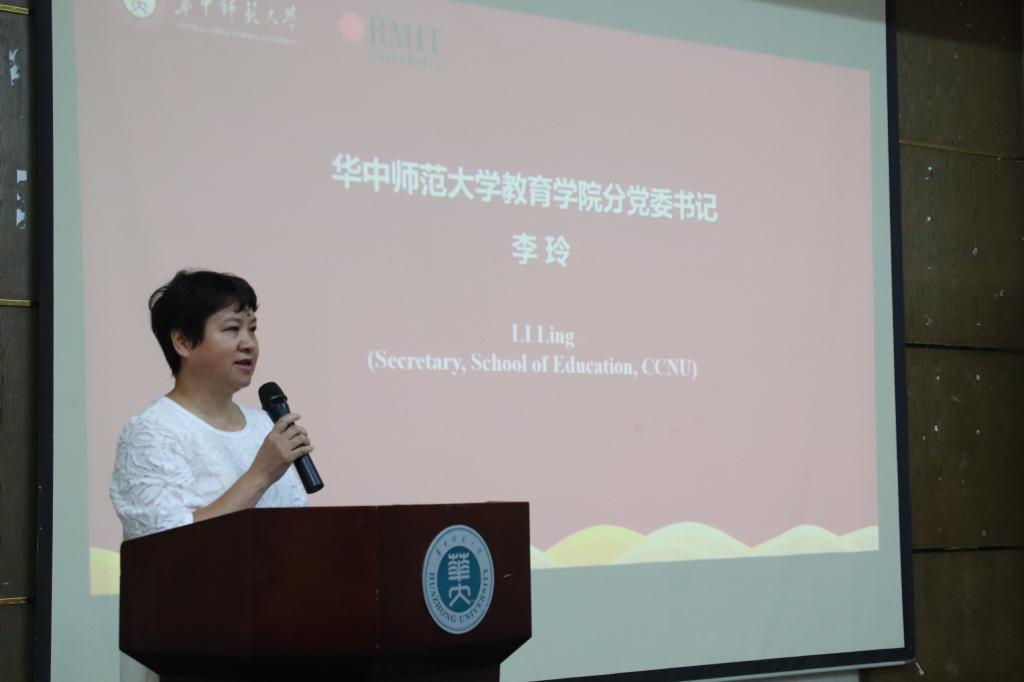 8月31日下午,教育学院学前中外合作办学项目2019级新生开学典礼于九号教学楼一楼报告厅顺利举行。澳大利亚皇家墨尔本理工大学(以下简称“RMIT”)副校长兼教育学院院长安德莉娅·切斯特(Andrea Chester)、RMIT北京代表处首席代表吴蓓丽、澳大利亚教育集团(以下简称“AEMG”)项目总监吕玉琪、华中师范大学副校长夏立新、本科生院副院长谢耀辉、国际合作与交流处副处长彭韬、教育学院党委书记书记李玲、院长雷万鹏、副院长蔡迎旗、副院长申国昌、党委副书记张扬、党委副书记黄玉新等领导出席开学典礼,AEMG相关项目负责人、教育学院全体辅导员、学前教育系教师代表、2019级学前教育中澳班班主任、2014级优秀毕业生代表、2018级暑期赴澳交流学生代表和2019级新生代表等参加活动。开学典礼分为上下半场,分别由李玲和黄玉新主持。