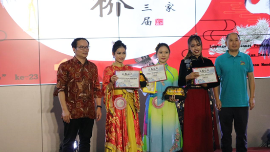 除了参加辅导的工作,孔子学院教师庄海莉、王欣、曾德玉也担任了第四届“汉语桥”世界小学生中文系东爪哇赛区选拔赛、第十七届“汉语桥”世界中学生中文比赛东爪哇赛区选拔赛的评委。比赛结束后,庄海莉和王欣分别代表演讲比赛评委和才艺比赛评委进行了总结发言。