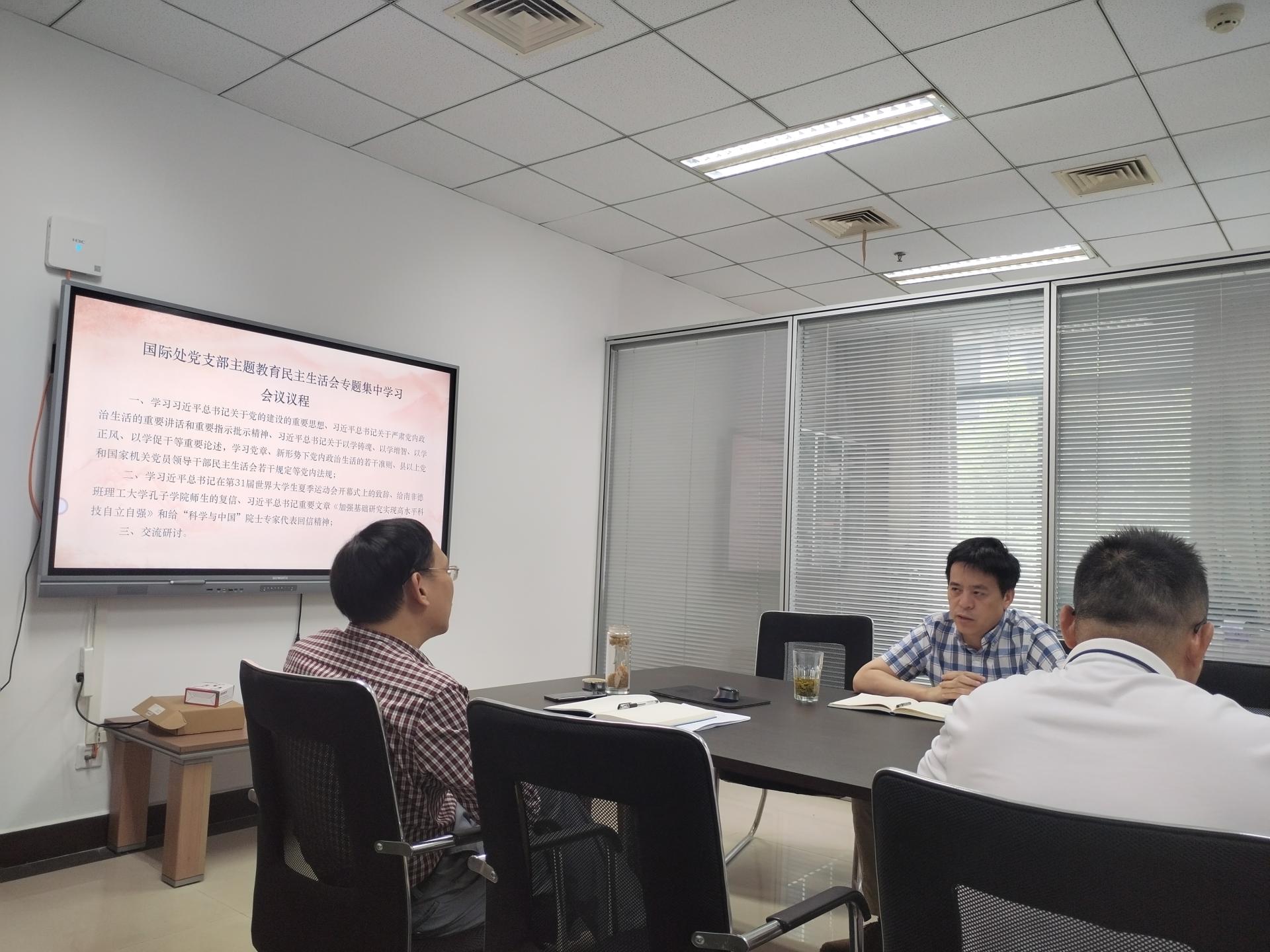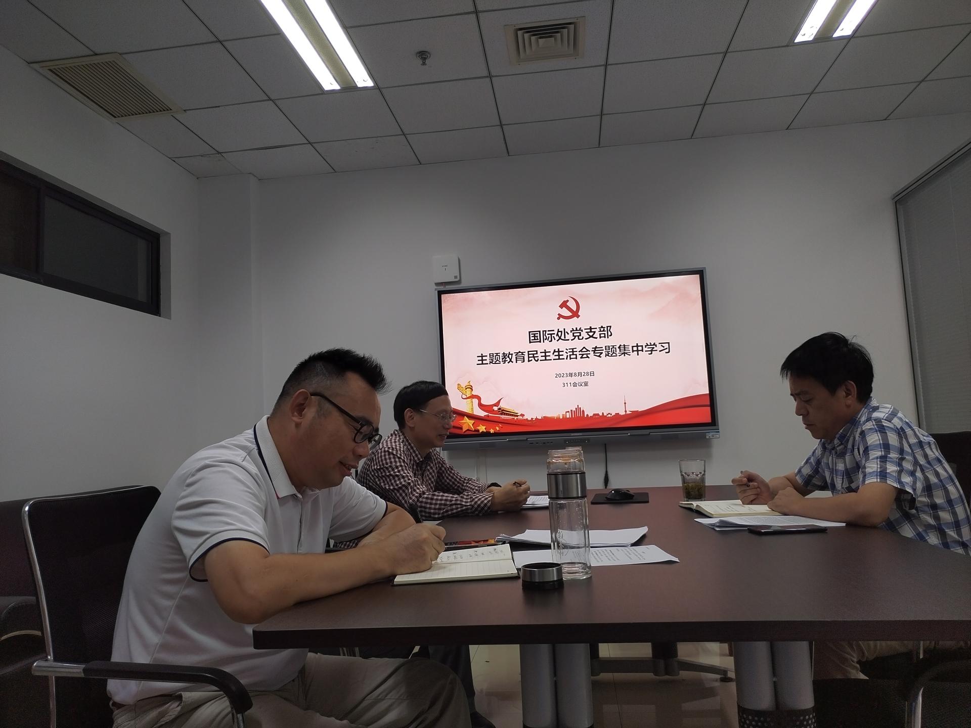 8月28日上午,国际处党支部党员领导干部在处办311会议室开展主题教育民主生活会专题集中学习。