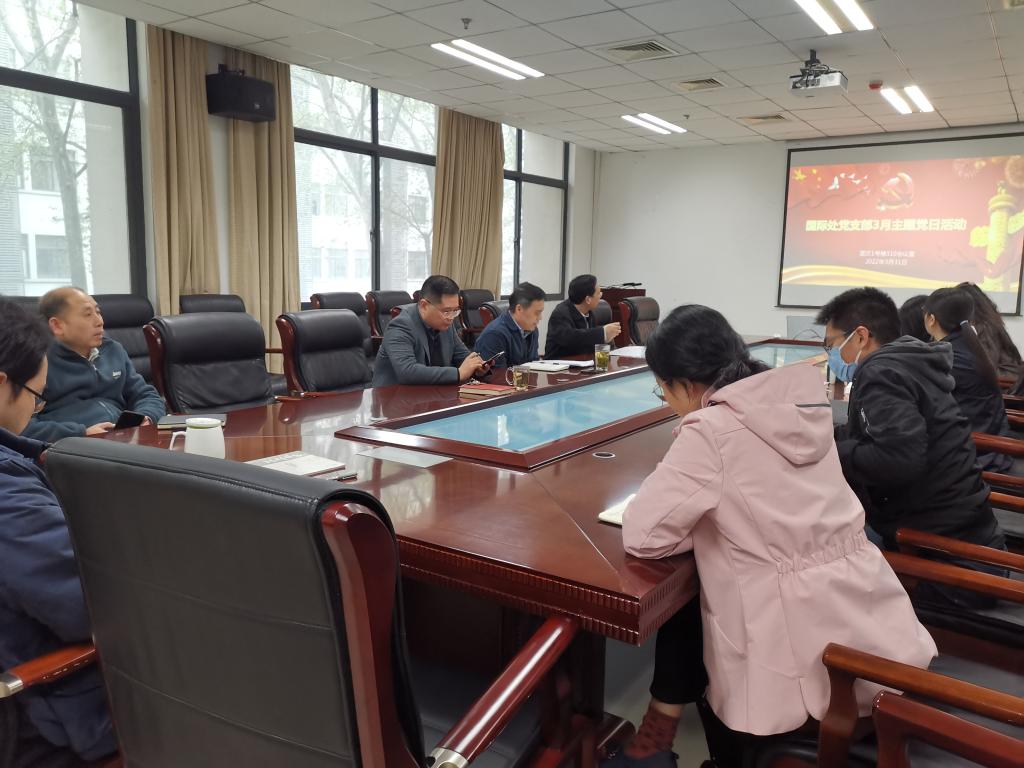 3月31日下午,国际处党支部全体在岗党员在国交310会议室开展了3月主题党日活动。为进一步学习贯彻“两会精神”,在此前组织观看两会开幕式的基础上,支部书记洪峰领学了李克强总理在十三届全国人大五次会议上的政府工作报告。支部副书记彭韬领学了习近平总书记给中国冰雪健儿的回信精神。周波副处长和纪检委员吴明分别领学了《华中师范大学2022年党建和思想政治工作要点》和《中国共产党纪律检查委员会工作条例》第四章--主要任务。