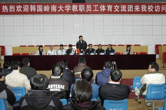 2008年2月24日至27日,韩国岭南大学教职员工体育交流团一行17人回访我校,并与我校教职员工开展体育交流活动。