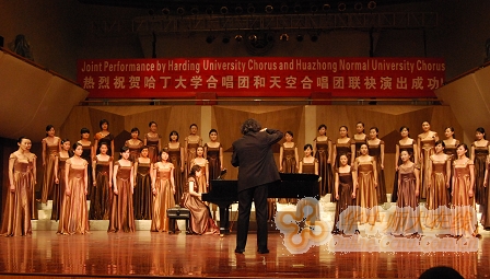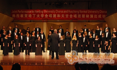 5月24日晚,来自美国哈丁大学的哈丁合唱团与我校TianKong合唱团在我校音乐厅联袂演出。
