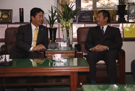 逄广洲副校长与釜山新罗大学郑弘燮校长会谈