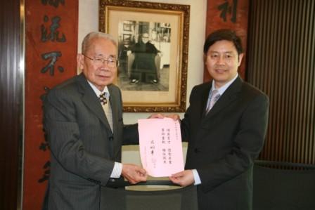 20日下午拜访了方润华基金会,向方先生介绍了捐款90万元建立电子阅览室运作进展,并向他表达谢意。方润华先生听完介绍欣然命笔,为学校题字敬贺:“培育英才 德智并重 尊师重教 继往开来”。