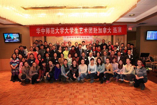 当地时间2月3日晚,艺术团一行与华中师大多伦多校友会60多名校友欢聚一堂,共叙母校情。本次联欢会由华师多伦多校友会现任会长彭刚(原公共外语系书记)主持。华师多伦多校友会首任会长蒋婉博士、中国驻加大使馆教育处领事翟建军(原外事处处长)分别向校友们送出新年祝福,并预祝我校艺术团本次巡演圆满成功。