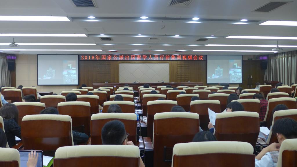 5月26日,由国家留学基金管理委会(以下简称“国家留学基金委”)主办的2016年国家公派出国留学人员行前集训视频会议在教育部主会场召开。我校逸夫国际会议中心设分会场,会议由国际处组织。我校共计129名公派师生(包括本科生、研究生以及公派教师)、校外单位共计14名公派教师参加了此次会议。