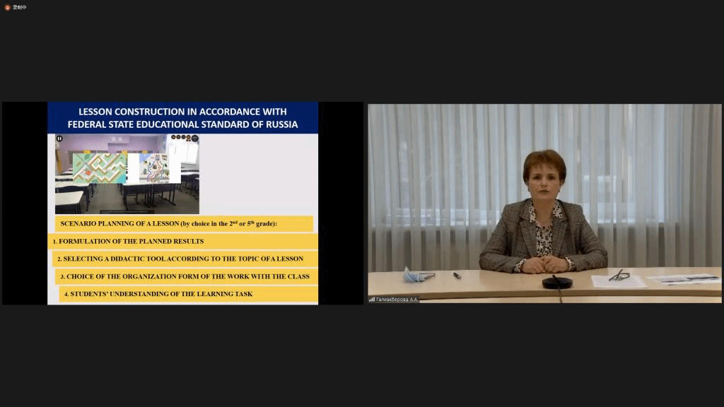 纳贝列日尼-切尔尼国立师范大学校长阿尔菲努尔·阿扎托夫娜·加利阿克贝洛娃教授作报告