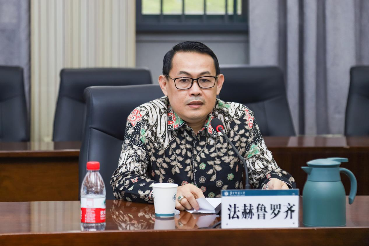 雅加达国立大学副校长法赫鲁罗齐感谢我校的热情接待,简要介绍了雅加达国立大学的办学情况,特别是该校学生在体育方面取得的优异成绩,期待与华师在运动、艺术等领域开展教师交流、学生培养双学位项目等方面的合作,进一步拓展和深化两校合作。