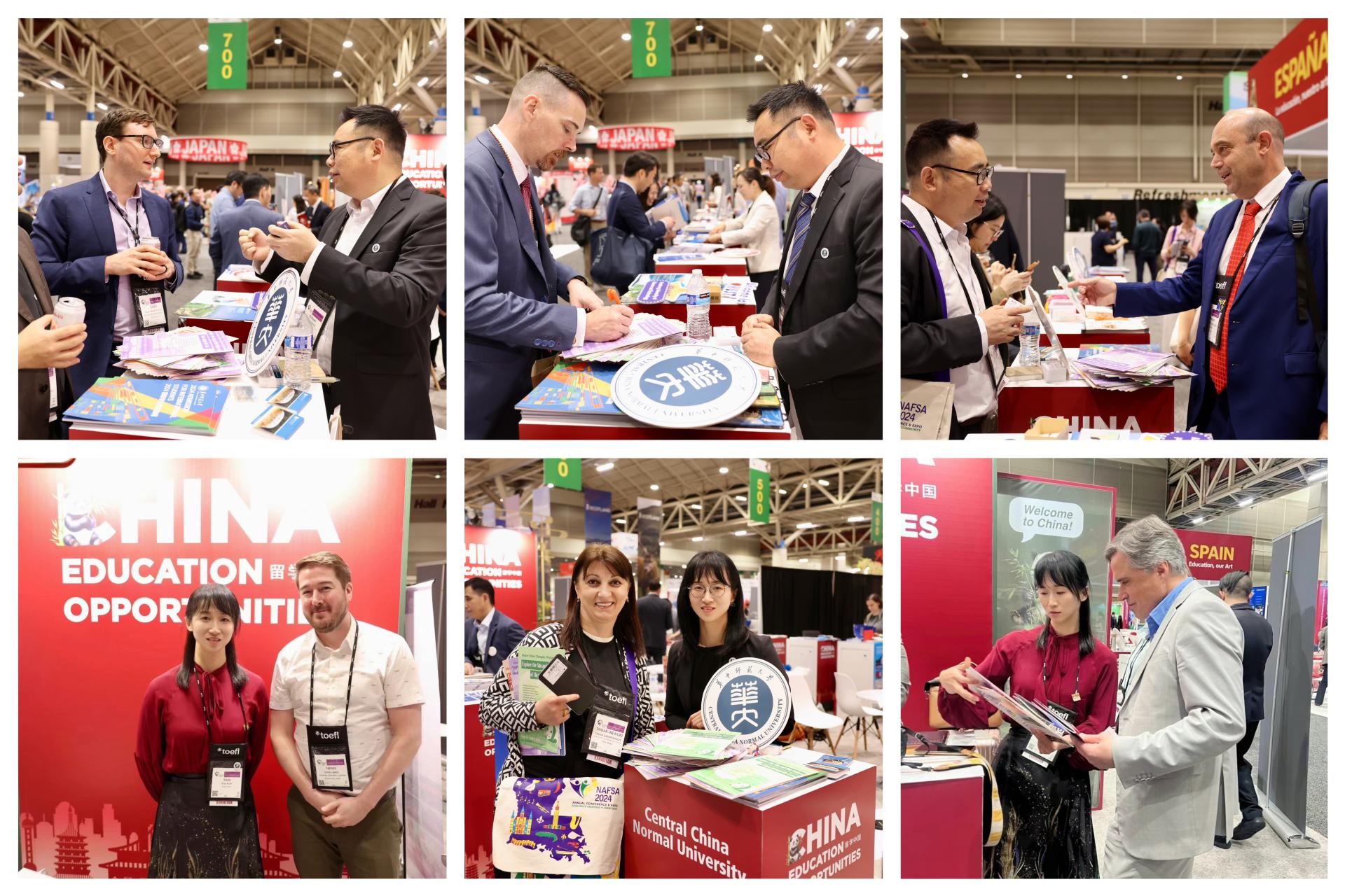 与会期间,我校代表亮相中国展区,主动宣介学校办学特色、学科优势和国际教育项目,与美国耶鲁大学、加州大学伯克利分校、加州大学河滨分校、英国伦敦大学学院、布里斯托大学、加拿大不列颠哥伦比亚大学等20余所国(境)外高校和机构代表举行座谈,商讨开展师生交流、合作科研和博士生联合培养等校际合作事宜。