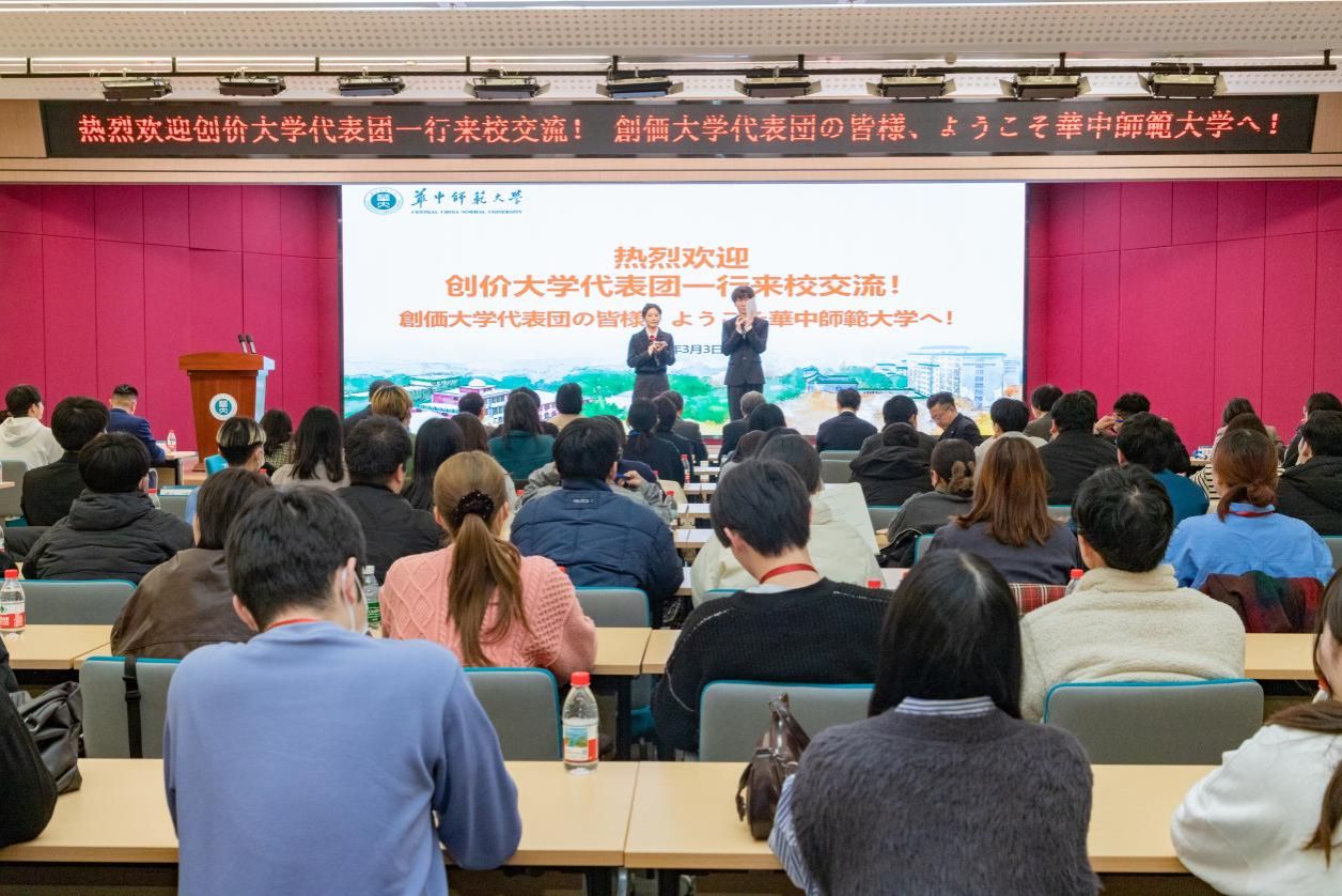 3月3日,由日本创价大学学生部长奥富雅之担任领队的创价大学代表团100余人来校访问,副校长任友洲在新文科楼101报告厅接待来宾。湖北省委外办班子成员、湖北省人民对外友好协会专职副会长司晴川,中国人民对外友好协会有关人员出席。我校国际合作部、外国语学院有关负责人参加。